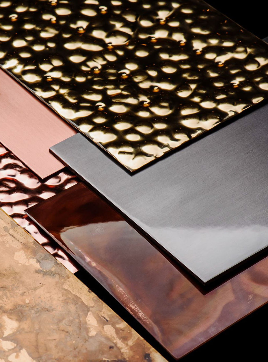 · Custom made metal finishes from our craftsmen and chemical specialist who works on oxidation and patina on metals and creates new unique effects and colors for our limited edition and bespoke products.