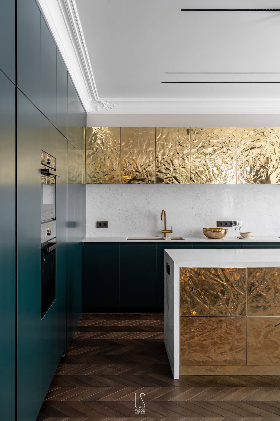 Aged brass kitchens, furniture, brass panels and tiles, metal coatings, and other brass details of your choice will help you elevate and transform your interior project into a unique experience.